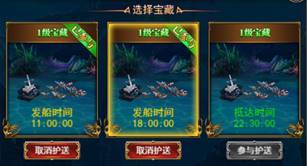 角色首先要在开服第五天,玩家等级达到3重3转才能开启家族航海玩法,参与时间为周一0点到周日22:30,并在周日22:40结算奖励。其中“护送宝藏”玩法每人每天都能参与2次,注意每天只有3趟宝藏护送时间:第一次11:00—12:00;第二次18:00-19:00;第三次21:30-22:30。